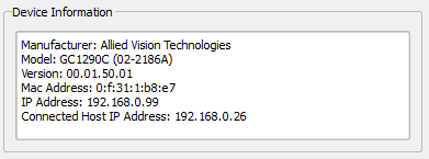 - Specify an IP address that uses the same subnet as the IP address of your connected network. The IP address of the connected network will be shown in the “Device Information” section as “Connected Host IP Address”. Your camera's current IP Address will be shown in the “Device Information” section as “IP Address”. For example, if your connected network IP address is 192.168.0.26 and the network subnet is 255.255.255.0, a good choice for your camera's IP address would be 192.168.0.99.